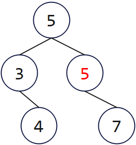 보편적으로, BST는 동일 값을 허용하지 않거나, 동일 값인 경우 왼쪽 자식 서브트리로 보낸다. 하지만 해당 문제에서는 동일 노드 값을 어떻게 처리하는지 나와있지 않다.