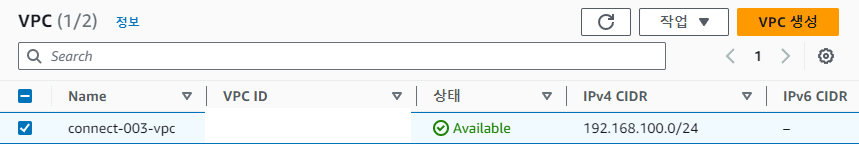 connect-003-vpc 에 할당되어 192.168.100.0/24 대역을 사용 중인 gateway-service