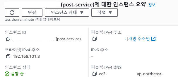 connect-001-vpc 에 할당되어 192.168.101.0/24 대역을 사용 중인 post-service